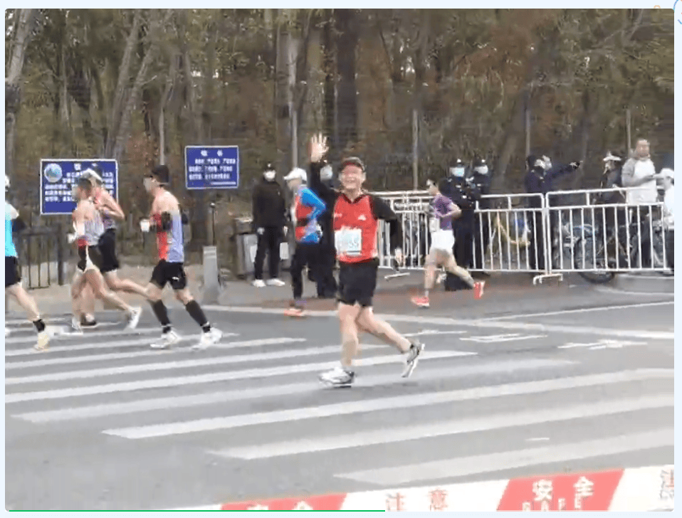 北马起跑点出发现场人声鼎沸,比赛赛道周围聚集着来自全国各地的观众,参赛选手在观众的欢呼和助威声中更加斗志昂扬。